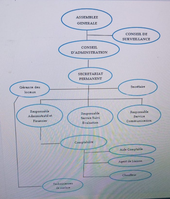 Le CA est composé de douze administrateurs élus en Assemblée Générale à la majorité simple. Un bureau de neuf (12) membres a été mis en place pour assurer la permanence des activités du CA ;
